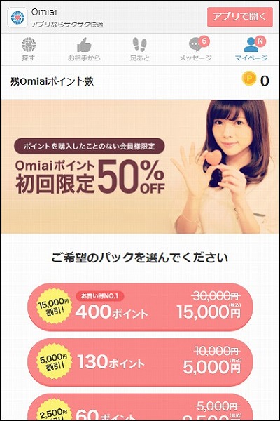 Omiaiはアプリ版とwebブラウザ版がありますが、webブラウザ版の最大の魅力は「料金の安さ」なので「プラン料金」を払ったり「ポイント」を課金したりする際は、アプリユーザーの人もwebブラウザから課金をした方がお得です。