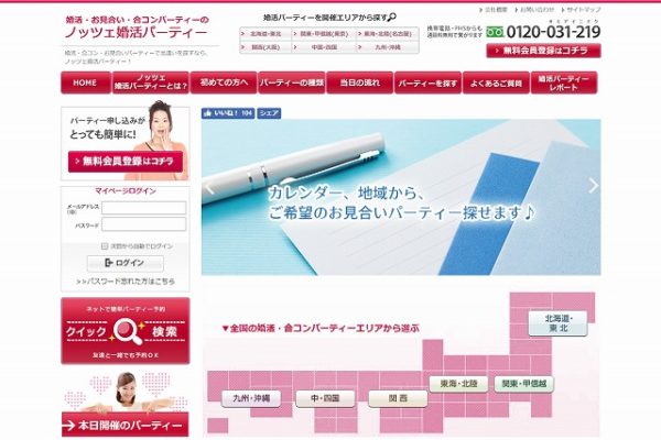多くのユーザーから支持を集める国内最大級の婚活パーティーで、全国47都道府県で毎日パーティーが開催されています。